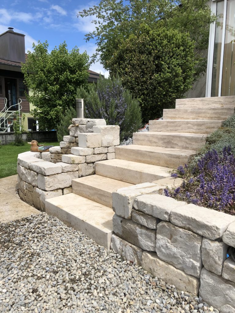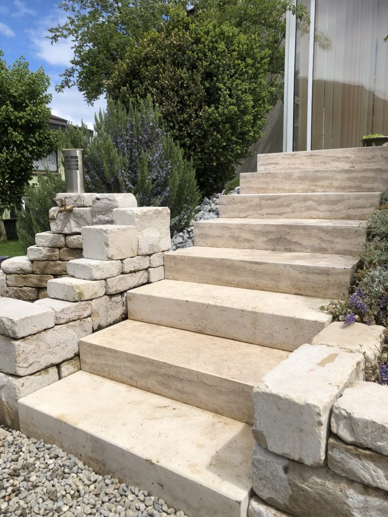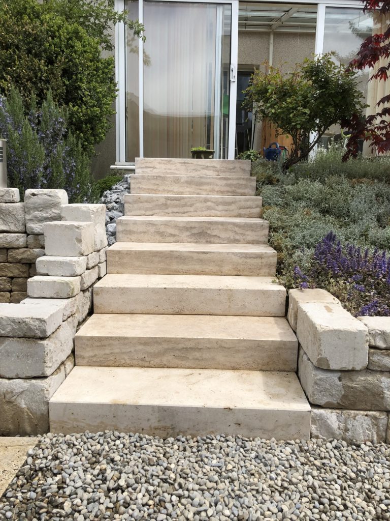 Treppen Verschiedene Variationen von Treppen Treppen aus WPC oder asu Holzpfählen Treppen aus Beton oder Naturstein Natursteinplätze mit allen möglichen Verlegemustern Treppen die überall rein passen Treppe aus Travertin